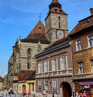 A város a Barcaság délkeleti szögletében, a Cenk-hegy lábánál fekszik. Évszázadokon keresztül gazdag kereskedőváros volt, ma Bukarest után Románia második legnagyobb városa.